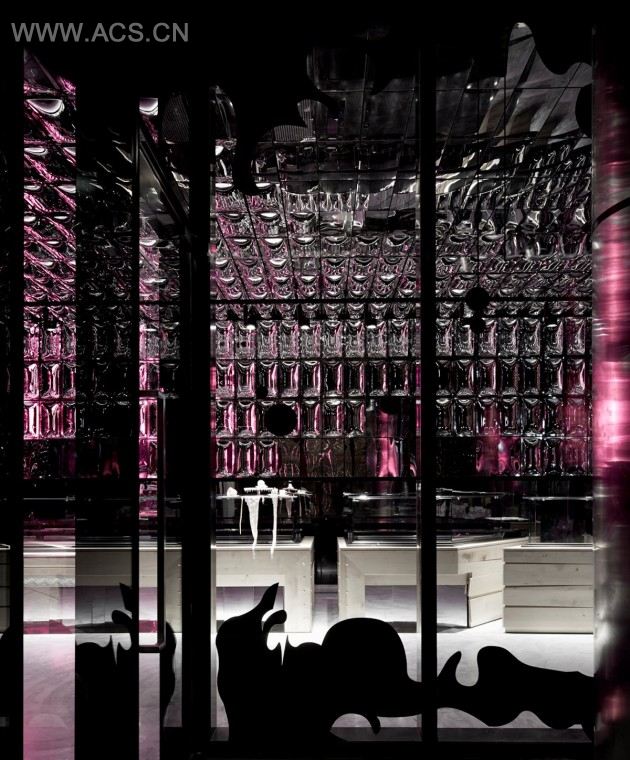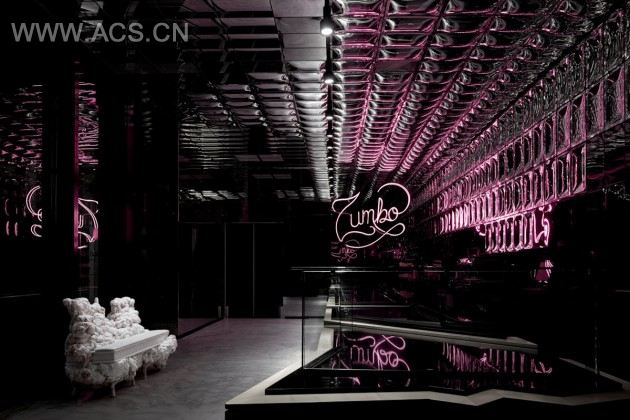 The brief was simple – stay true to the Zumbo brand and use a bit of pink – so the design team took matters into their own hands. They expanded the response to include the graphic design for signage and lighting as well as custom-designed furniture, creating a delectable fantasy world with a slightly kinky twist – classic Zumbo and classic Elenberg Fraser.