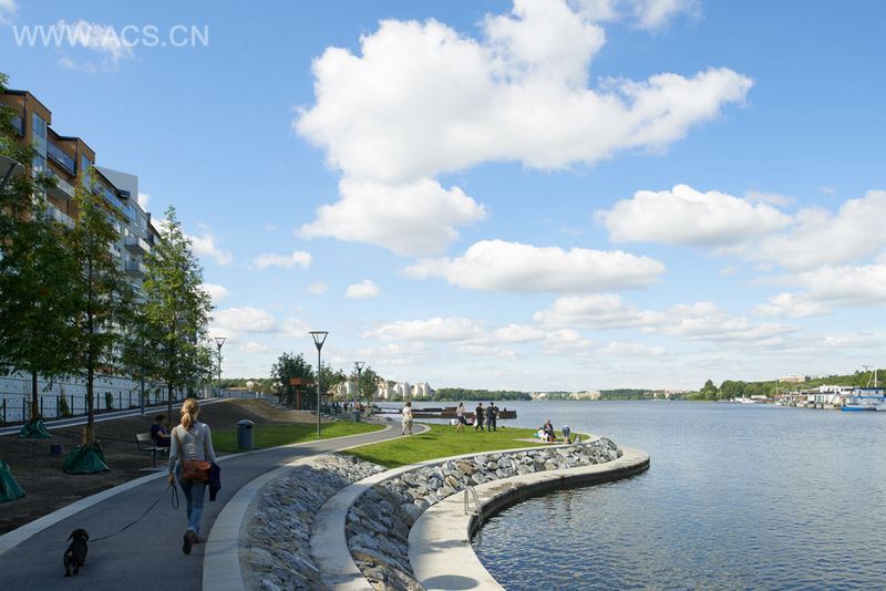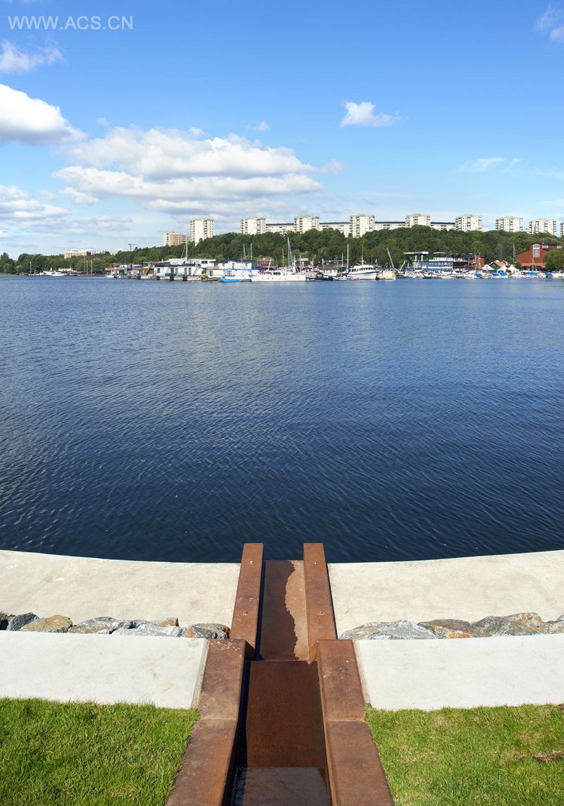 公园长700多米,由4个部分组成。西部是可以享受日光浴的防波提,长短不一的木质码头伸向水中。东部是Kajparterren,与有机海滨公园形成对比。它是一个增加了水平高度的圆盘,稍微向水域倾斜。东部远处是已经存在的部分,经过重修后更容易到达。