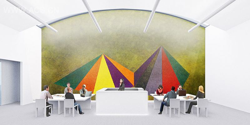 整个扩建工程将重建Hessel艺术展览空间,HWKN以英国艺术家利亚姆·吉利克合作的一整幅特色彩墙,其在中性的展览空间中具有导视作用,让身在艺术品种的游客们能够清晰的感知方向。此外,扩建工程还扩大了一倍现有教学空间,其中包含一个充满自然光的书库,书库将能储藏3--6万册艺术藏书,状成为美国当代艺术超凡绝伦图书馆之一。