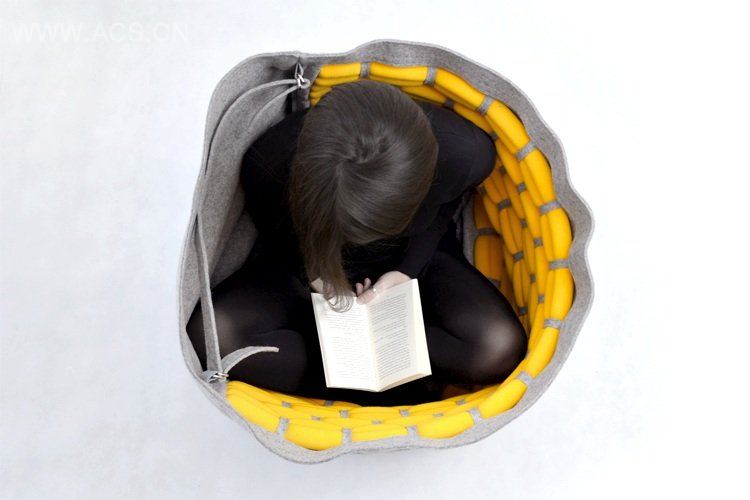It consists of a soft inner cushion surrounded by a sleeve, creating a cozy shell which envelops the user. The integrated belt on the top of the sleeve allows Snug to be adjusted to support your body in a variety of different positions.
