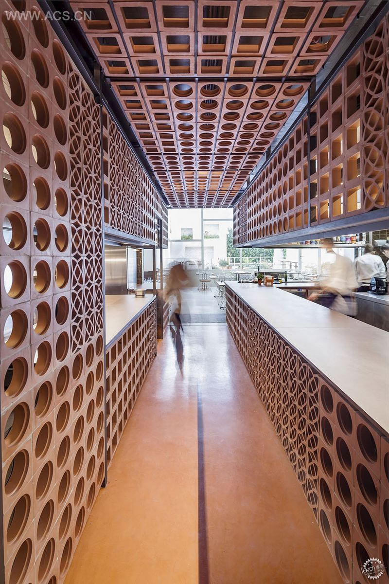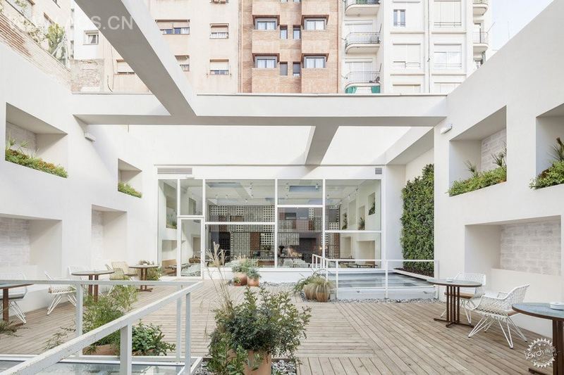 我们从这个项目的几个不同角度开始介绍它的设计旅程:一方面,餐厅的本土性、奇异性和大胆性在于它的形式和位置,这要求我们能够做出相应的方案。我们在巴塞罗那一条繁华的街道上找到一个狭小的空间:这个空间伸展、放松并且充满阳光,通过方形中庭可以到达一个大平台。