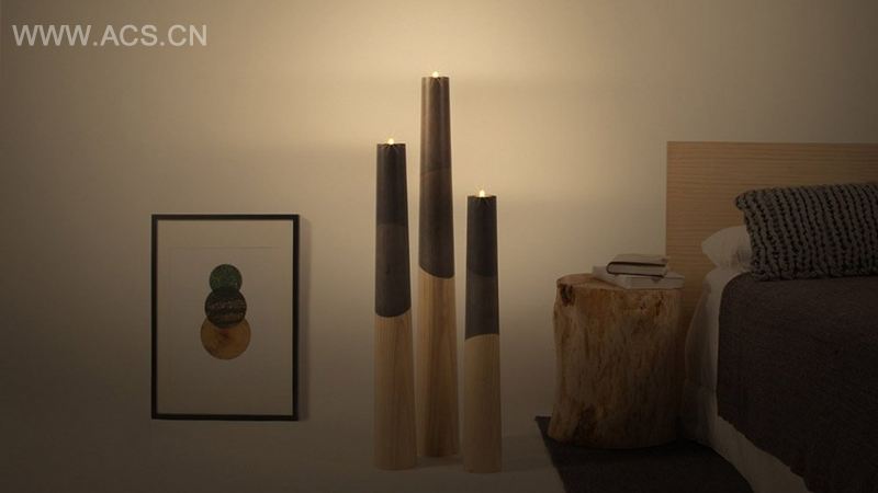 ETNA is a collection of giant candle holders designed by Madrid d Daniel García Studio with the collaboration of María J. Vargas. This giant candle holders are ideal to give any environment a splash of light and colour. Its simple and clean lines come from a conical shape made of solid pine wood. This colour highlights the natural shades in the wood thanks to its translucency. Etna collection is produced by Spanish company Woodendot and allows for the creation a great variety of arrangements, as it is available in three different sizes (1.150 mm, 950 mm and 800 mm) and in a six colour palette.