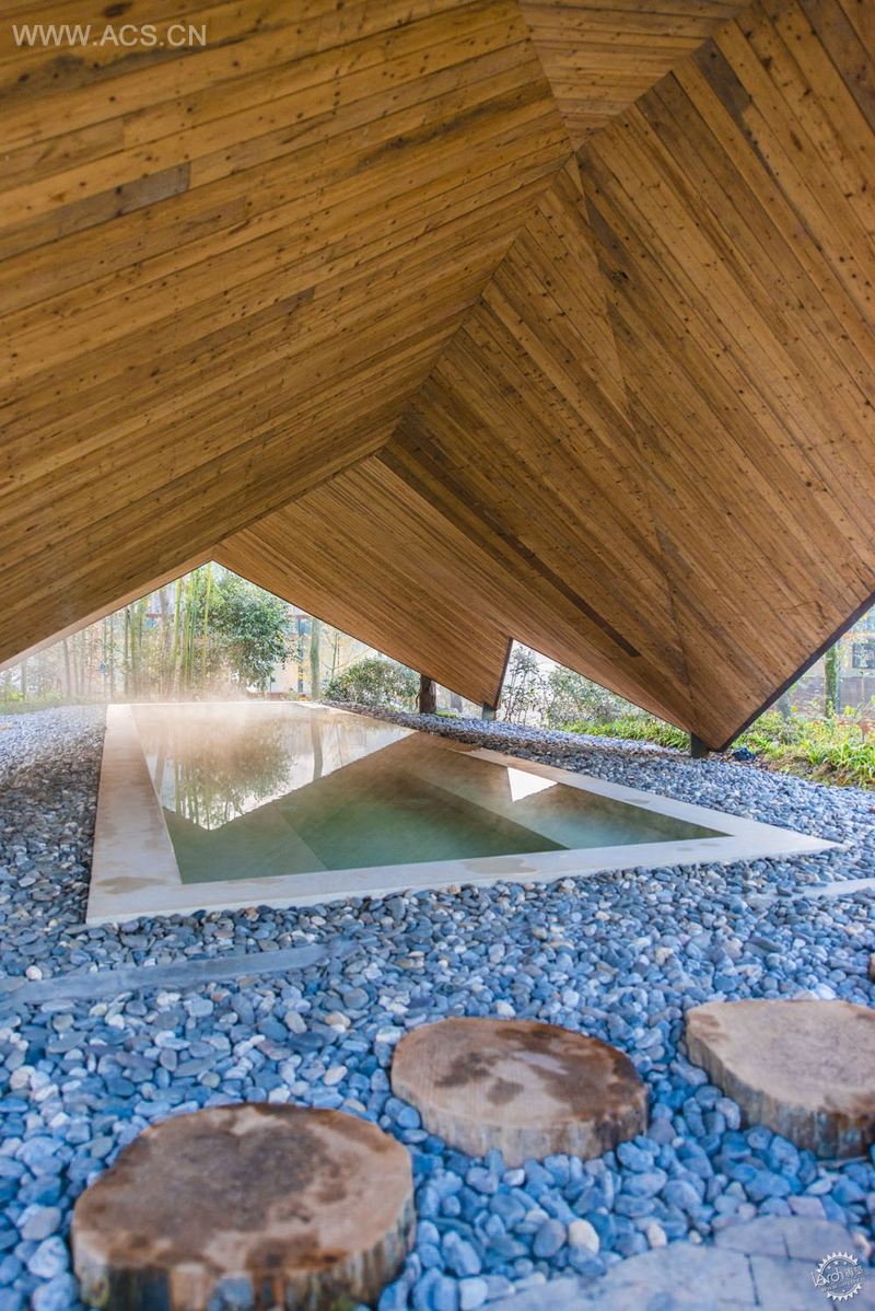 中心SPA(水疗)设施围绕着一个小山组织起来,他们是一个个独立的建筑,但是有连续的屋顶。一些有着不同浓度矿物质和不同温度的室外游泳池,加强了该地区湿润的亚热带季风气候的体验。
