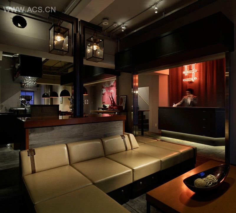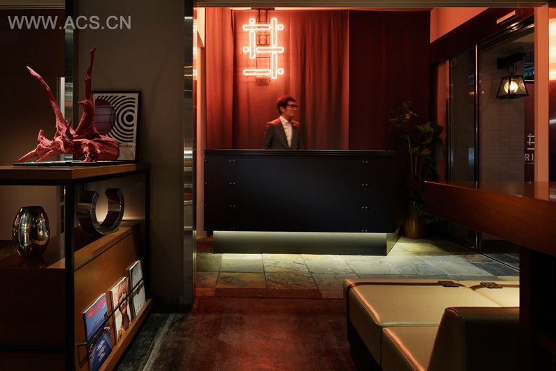 Upon entering, you are greeted by a bright neon sign (typical to the area), followed by the bar and lounge area, both of which have been inspired by a railway terminal.