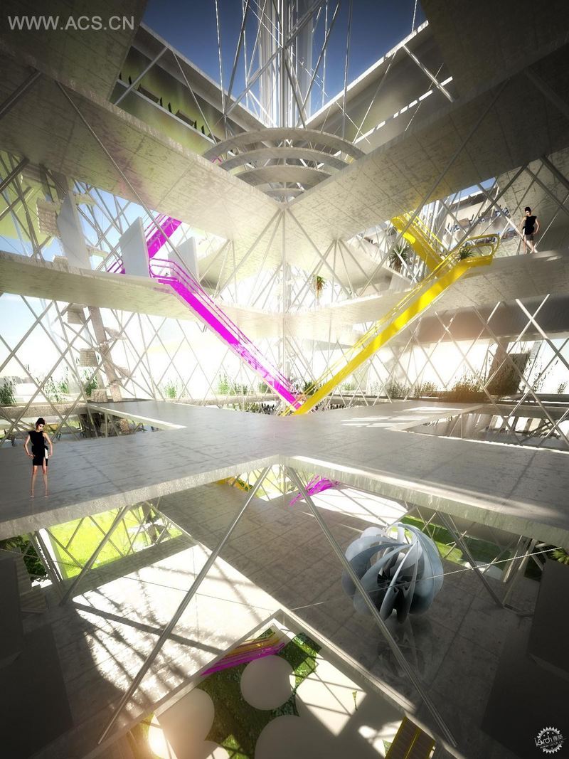 另外一个重要因素是建筑师对于可持续元素的运用,通过使用Invelox系统利用风能产生电力。每15个垂直塔楼将配备全向通风口,引导风通过一个“锥形通道”,通过使用几个文丘里管自然地加速其流动。“动能的一部分将驱动一台在地面上安全和经济安装的发电机。该提案包括控制系统,随“季节以及昼夜变化,能源混合式可回收通风系统。”对于地方可再生能源(如地下水,风能可再生能源,太阳能热水,太阳能光伏和风能辅助通气等),项目未来还将会应用很多。