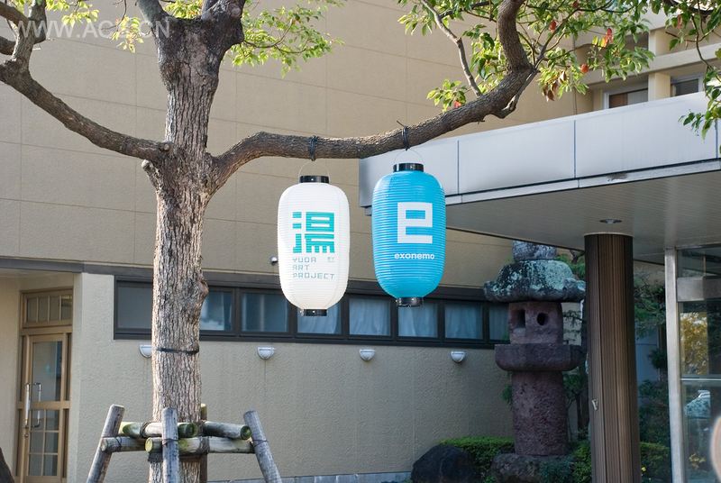 这个导视系统设计的灵感来自于县内著名的“山口闹元宵”中的灯笼。我们认为灯笼是最符合YCAM绿色“湯”的特性的一个物品。绿色的灯笼引导游客们到达温泉度假区中充满艺术气息的地方。该项目是传统日本元素与现代主义的完美结合。