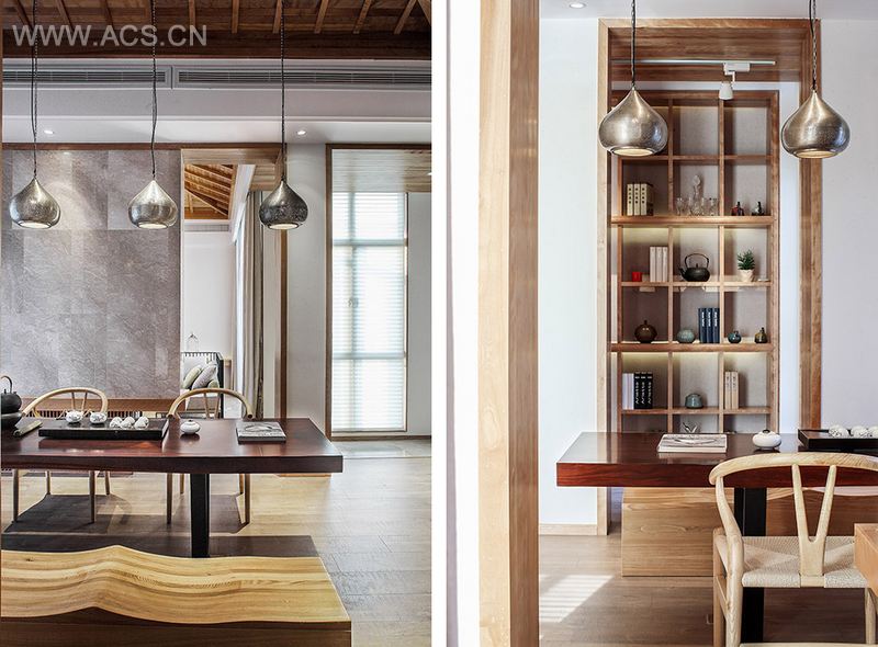 庄子说:“天地有大美而不言。”本案的设计以自然、人文、度假为主题基调,同时依托当代的设计手法,用清雅低调的美感、沉静平和的气度,来表达“观乎人文,化于自然”的和居美学。设计师从项目的地域环境、楼盘特色、人文精神出发,通过精细的考量和规划,采用大量的“有温度、有感情”的木质元素和天然材质,力图打造出一个充满自然气息和人情味的空间。设计师直取设计的本质,表达出空灵之美,给人以遐想,使人从表面的艺术形态中超脱出来,品味幽玄之美,从而远离都市的喧嚣,让生活回归质朴、舒适和宁静。