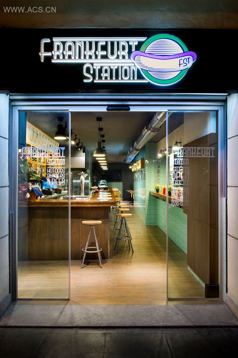 法兰克福是一种香肠的名字,也是一座城市的名字,将美食和旅行的乐趣结合在一种体验中。基于这个原因,客户用这样一个简单却令人印象深刻的名字来命名餐厅。