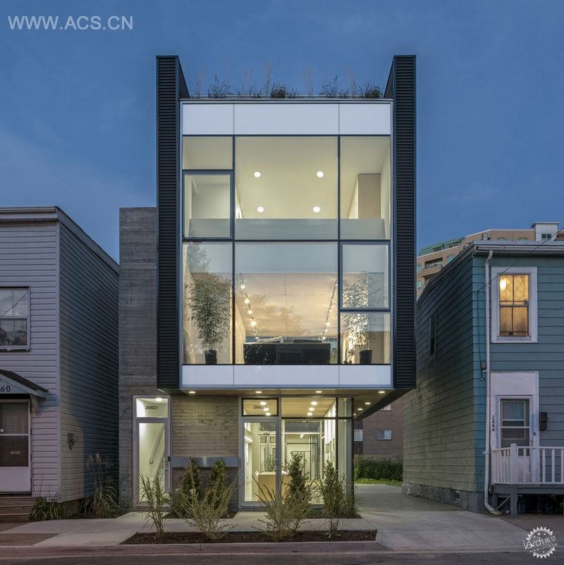 Nova Scotia位于新斯科舍省的哈利法克市北部的一个折中社区,是Susan Fitzgerald事务所和她的建筑合伙人Brainard Fitzgerald合作自建的一个私人综合用途项目。邻近市火葬场、伊斯兰清真教发展中心、一个复印店、一个合法的大麻种植项目、一个分类回收站、一个烘焙咖啡厅、一个汽车代理点、一个汽车维修站、公寓大楼区和一排建于九十年代的稀疏的排屋。在25×100的小区内,本项目为丰富社区的特色做出了卓越贡献;转换可用地,快速成长和轻工业都预示了一个不确定的将来。本项目通过提倡保持和丰富社区的多样性的各种途径,增加了小区的密集性,社区性和宜居性。