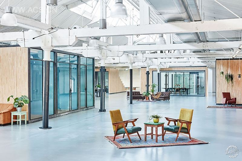该项目由Melinda Delst Interior Design工作室和modderman工作室合作设计,设计中表现出了公司的社交和可持续发展的理念。仓库原有的结构大部分被保留了下来。设计师将工作区合理地设置在有窗户的位置,以便利用白天的自然光,并且获得城市景观的良好视野。正式的会议场所和封闭式会议室设置在中间位置,一个大型厨房和吧台设置在入口处。