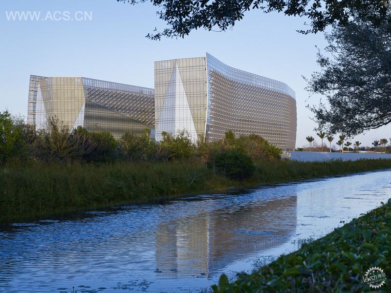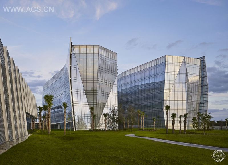 Krueck + Sexton Architects完成了面积达375000平方英尺高度可持续的联邦办公大楼,项目位于佛罗里达州米拉玛145大街西南2030 号。基于GSA卓越设计程序开发,作为联邦调查局办公楼,园区建筑朝向和形态适应于当地的气候和自然环境,符合调查局需要。因此,办公楼在保持最少能源消耗的同时,使光照和景观视野最大化,并且为联邦特工提供高品质的办公环境。20英亩的基地中多数是佛罗里达大沼泽的天然湿地恢复区,在视觉上保持边界高度安全性的同时,将园区与当地社区联系起来。