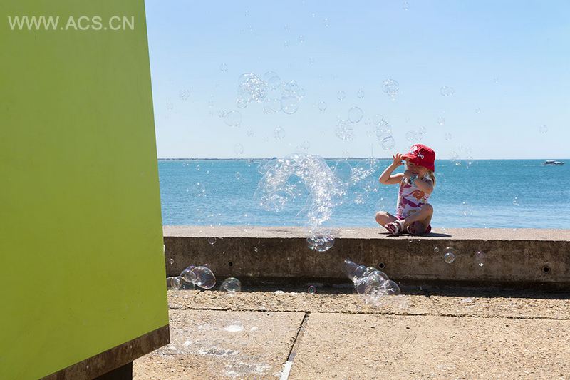 蘸上肥皂水的网儿在风中被拉开,便诞生出好多随风而动,却又转瞬而逝的梦幻泡泡。