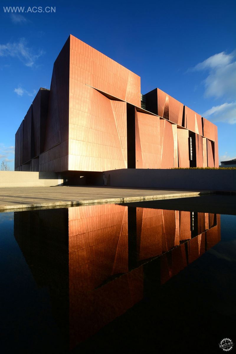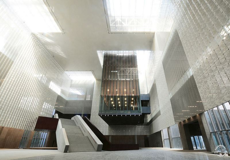 整个博物馆有一个狭窄的大门,从入口处进入后,便是一个开阔的中庭,营造出别有洞天的感觉。建筑外立面明显使用了垂直基准线,意味着展览空间和行政办公空间的区别,也让人联想到云南天然岩石构造中的水平岩层。从水平方向来看,建筑外立面一系列的“切口”和“翅片”,将城市与内部中庭连接起来。自然光线透过双层外幕墙照射进室内,创造出一种独特的氛围,与周围环境也很交融。