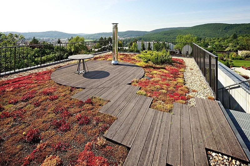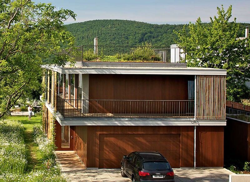 This house, designed by Atelier Stepan, includes a pathway that leads to a small rooftop deck, surrounded by a moss garden.