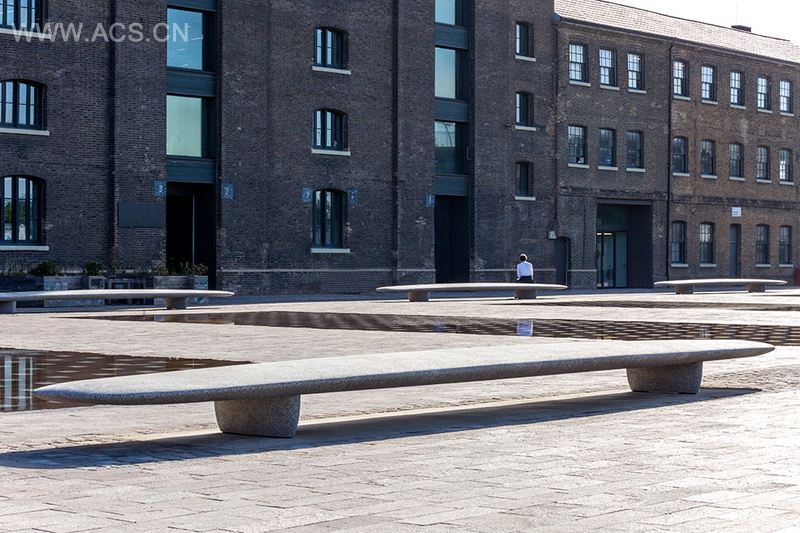 伊恩·麦克切斯尼的新作已在伦敦新圣马丁Granary广场上揭晓,作品是8个巨大的长凳,分对安排在四组喷泉边上。每个花岗岩凳子长八米,宽1.2米,重约4吨。