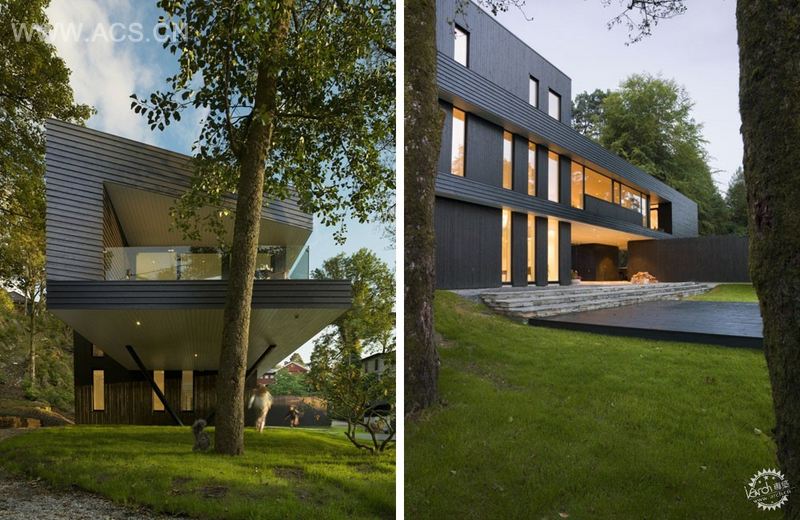 卑尔根建筑师托德•桑德斯自行设计了一座住宅,就像是挪威树林里荡起的交响乐。这是他的最新项目,在卑尔根枝繁叶茂的郊区为自己家庭设计的别墅。别墅由三个木质包层单元组成,一个垂直的,两个水平的 —— 但是将它描述成严格功能性的组合体准确得多。桑德斯描述说:“它像三个长方体体块,堆叠在彼此之上。”延伸部分保持着类似的构造方式。