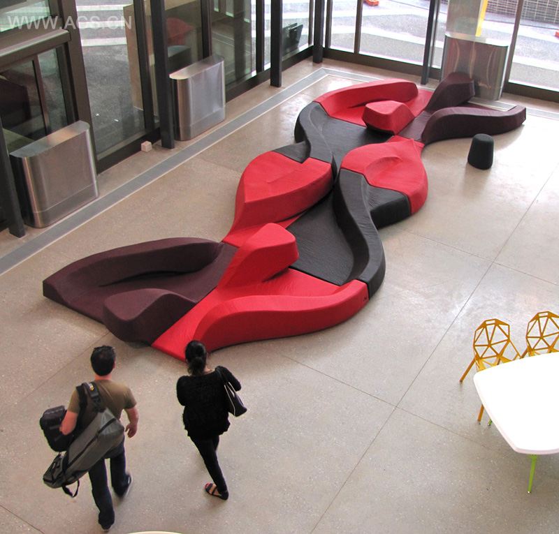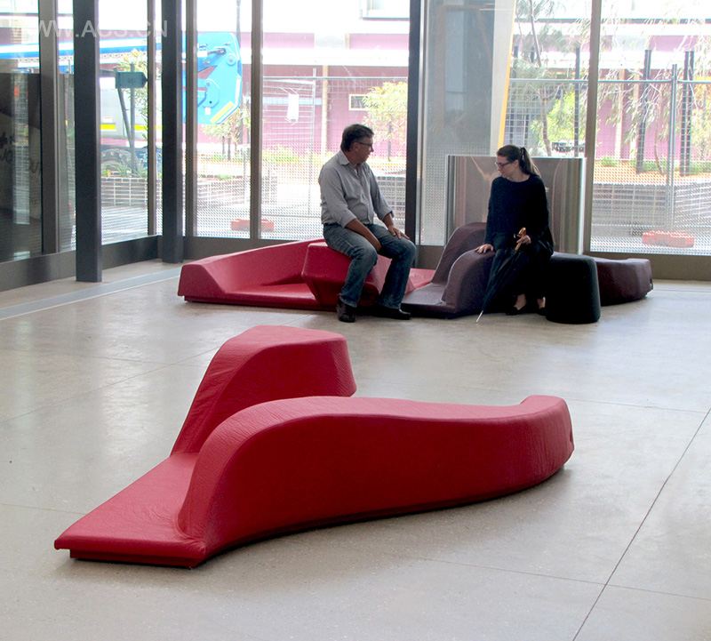 The D&A system is comprised of 3 modular units (2 meters long each) which can be multiplied and create many types of seating arrangements. Each sequence of units keeps a flowing form, just like a DNA structure. The form encourages sociability but also gives the option of sitting apart – the freedom of choice in how to sit makes it easier and more comfortable for users to start up a conversation or simply sit and watch the world go by.