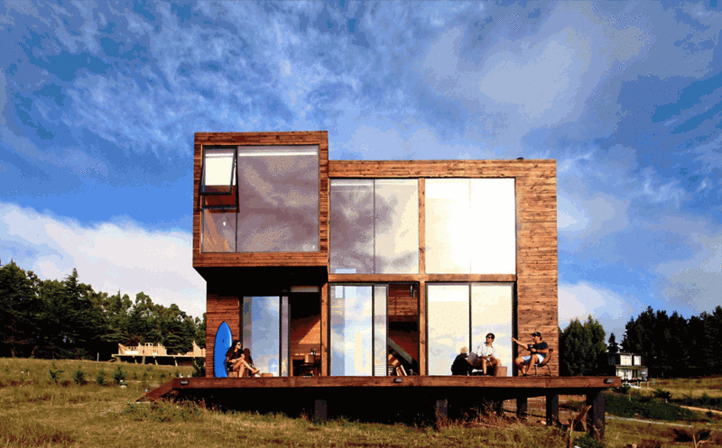建筑室内采用开放式布局,一层包括起居室,餐厅,厨房,以及联系各空间组成的共享空间。一层还包括了一处供冲浪者使用的客用盥洗室。二层北边是可以观赏海景的主人卧房。向南则是可以尽览一二层共享空间的廊道,廊道尽头是一处小客居室及用于准备未来扩建的采光窗口。