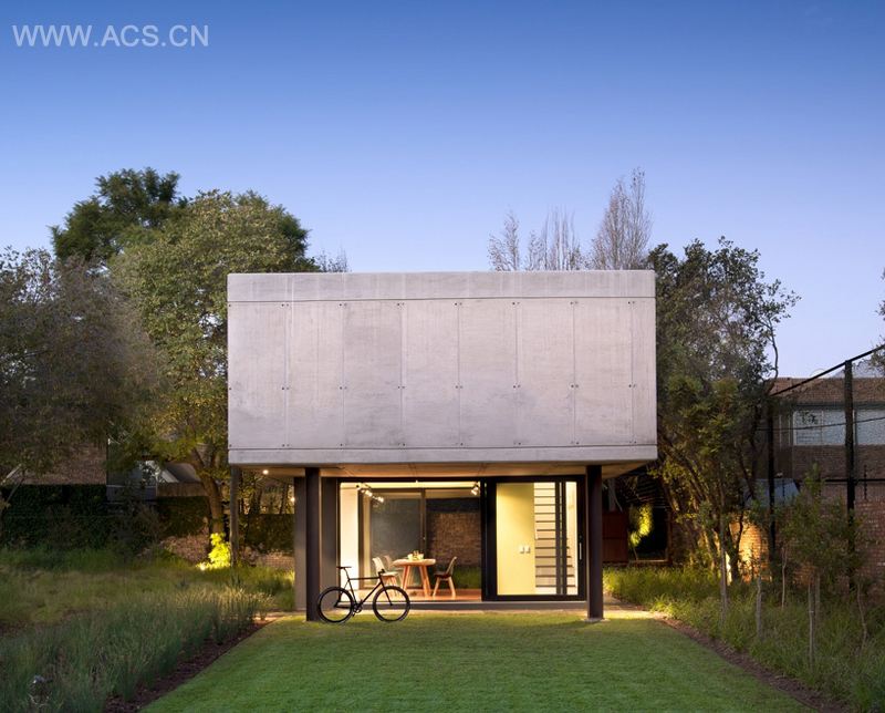 住宅仅是由一个简单的架高混凝土盒子组成,南北向横跨场地。以这个体量为起点,可以创造出各种不同的空间,让建筑在今后的不同时期内均具有适应性。例如,位于二楼的厨房拥有将来原位新建第二间卧室及其卫浴所需的连接。尽管一个房间不可避免地要为另一个房间牺牲掉某一面墙,但是通过这样的方法完成整座建筑的重建会大大节省金钱和时间成本。
