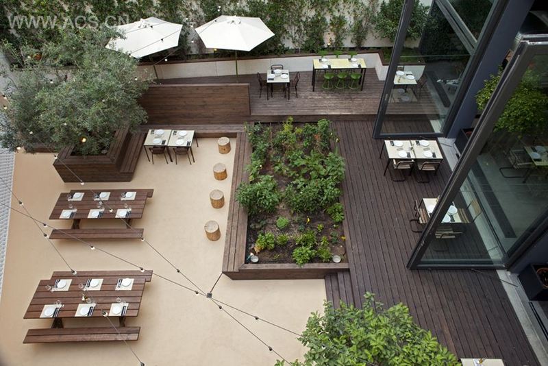 “48城市花园”(48 urban garden)是一家由AK-A建筑事务所设计位于雅典的餐厅。这家餐厅建造于艺术中心的底层,设计有古怪有趣的大片户外就餐空间。该空间不同层高均设有座椅、餐桌并装饰有花床、植物做装饰。餐厅以绿荫环绕,并鼓励来此的就餐者在这个花园空间中漫步穿梭,感受一种轻松的、质朴的、闲适的用餐氛围。