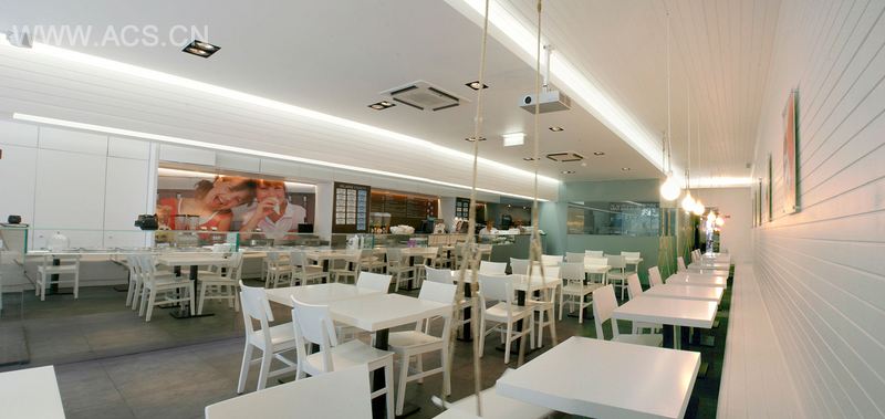 这间冰激凌店位于公共区域的地面层,地下层是仓库和辅助设施。
