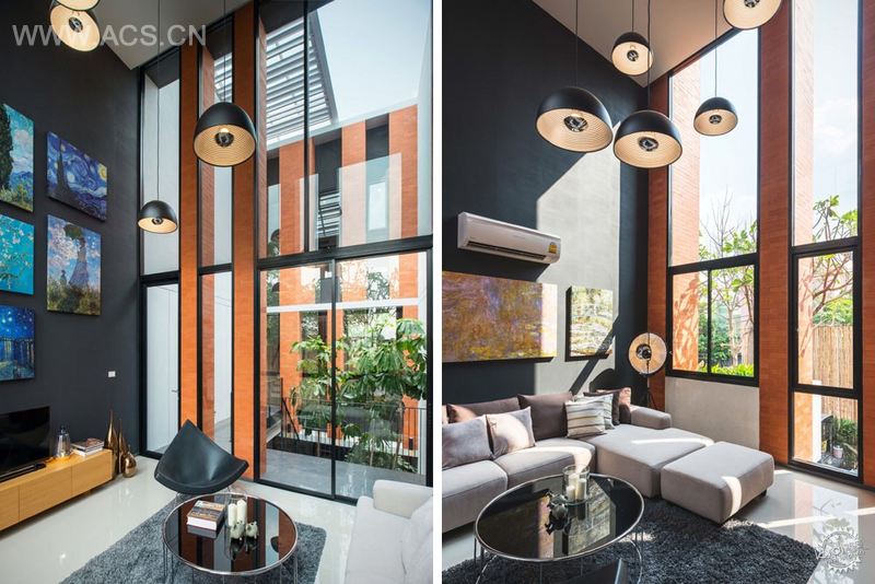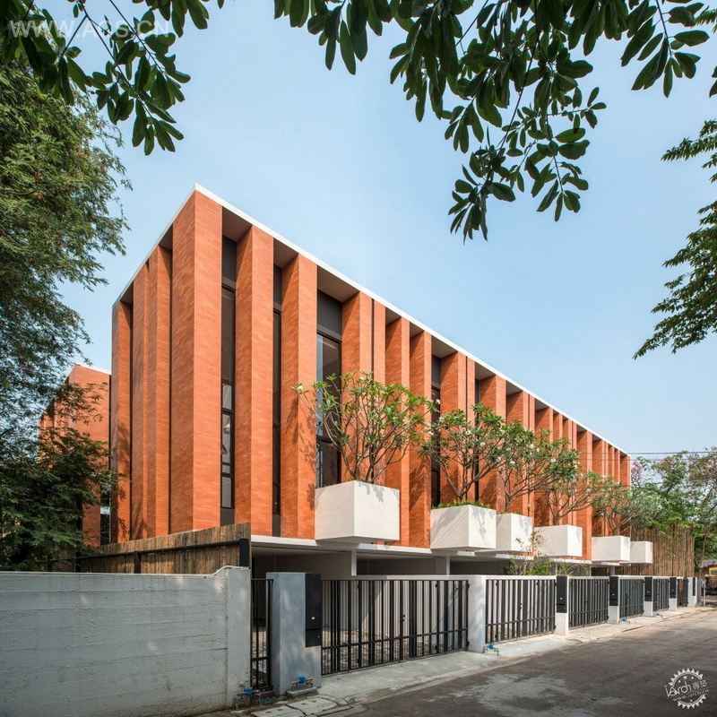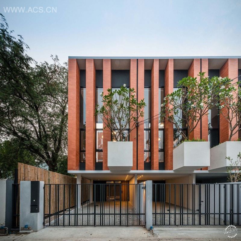 经过几十年的发展,很多连排住宅已经无意地转变成深色的、空调通风的箱式建筑,这在曼谷尤为突出。为了恢复改善居住质量,我们在每个单元的中间创建了通风井和袖珍的花园。