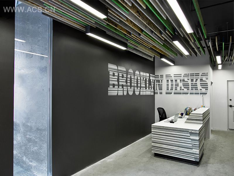 The concept was to create a refined working environment using materials that would normally be considered trash.