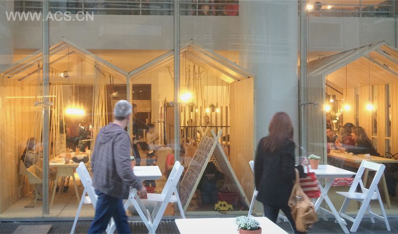 The wood houses, the 3 Fun Houses, divide and control the open space, generating different zones, with different moods.