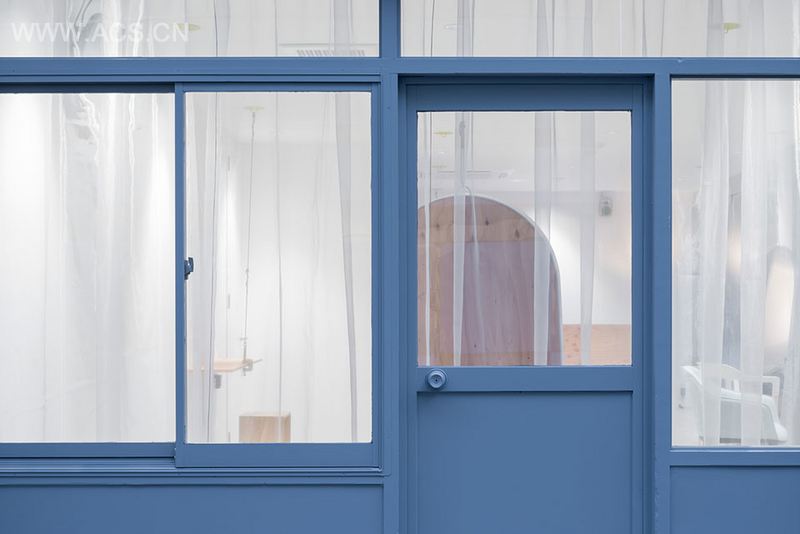 为了未来自由布局的可能性,建筑师没有安装固定的墙面储物架子和镜子,而是用钩子和绳子将这些构件悬挂。此外理发店的原有灰色外观被保留下来,同时设计师将这种色调也引入室外,形成内外边界模糊的空间。为了遮挡外部景观干扰,同时又引入自然光,建筑师在窗户上挂上了最薄的窗帘,最终整个空间充满了让人愉悦的漫反射自然光。