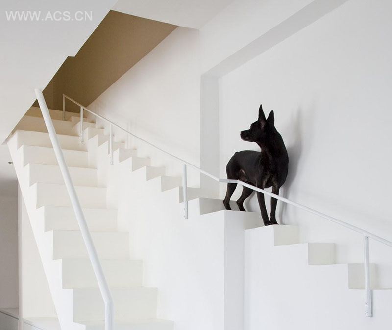 When designing the renovation of this home in Vietnam, designers at 07BEACH included half-size stairs for the small dogs that lived there, enabling them to more easily walk up the stairs.