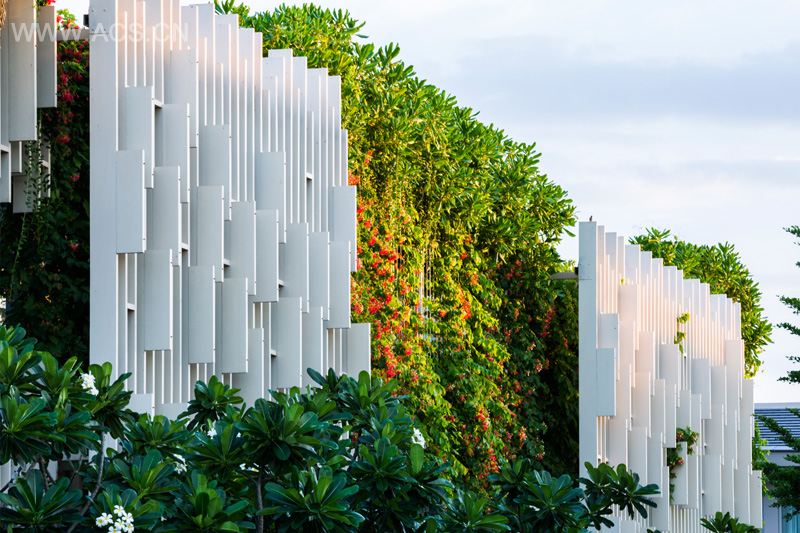 Different area’s flow smoothly into each other and the beautiful landscape creates an amazing journey into a dream like experience. The facade is composed by lattice patterns alternated with vertical landscapes that filter the strong tropical sunlight into a pleasant play of light and shadow on the textured walls. Various plants are carefully allocated and become a part of the architectural screens.