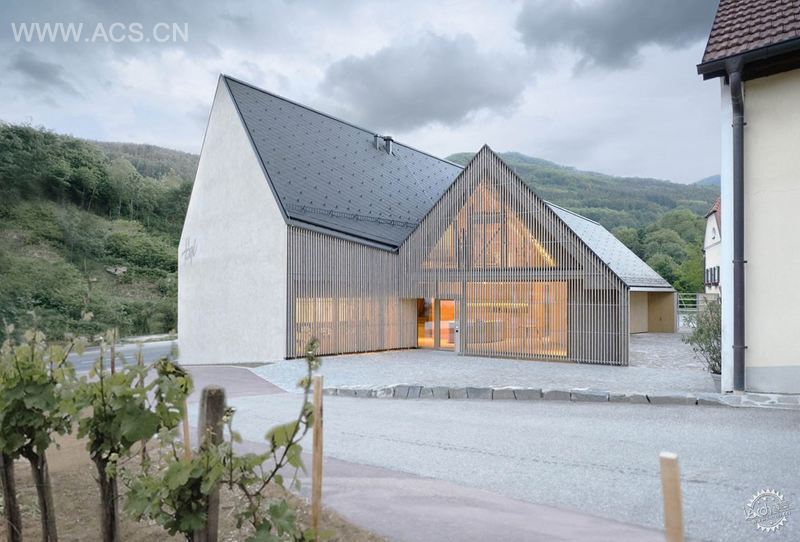 建筑结构更突显了其所在的位置,庭院被完整地保留了下来以便利用总体潜能。房屋和原有建筑一起形成了内院,将街道隔在外面保持了建筑内部的安静环境,而且它矗立在路边就像是特意邀请人们进来休息。新建筑包含葡萄酒生产和品尝这两个功能区。生产车间沿着道路建造,而在品尝区可以看到前院。新建筑界定了两个不同的入口区。