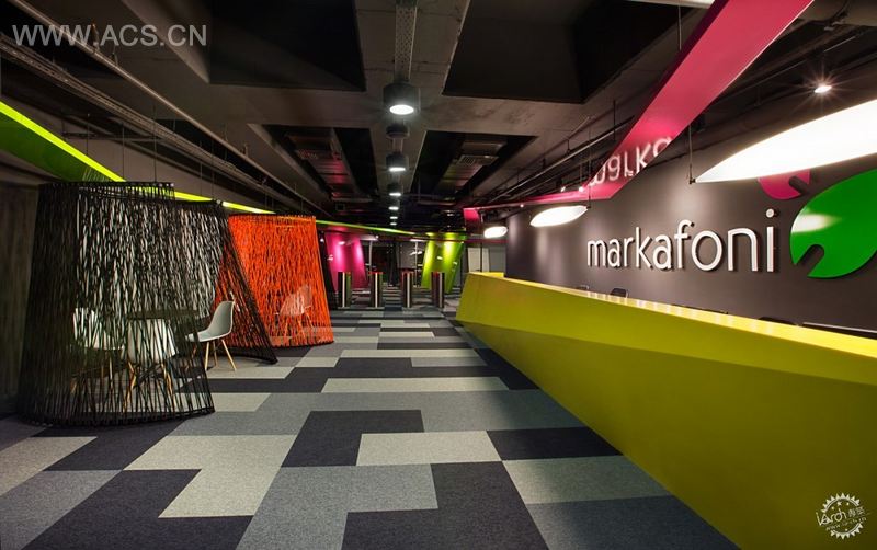 通常,在办公室室内设计中,我们一般是用设计元素来展示企业形象,而且这些设计主要体现在接待区和休闲娱乐区。然而,如果设计中都采用同样的方法,那么我们的工作区就显得很简单,且所有设计都千篇一律。所以我们在设计Markafoni.com公司新总部时试图完全避开这个方法,该公司是土耳其领先的在线时尚和购物公司之一。