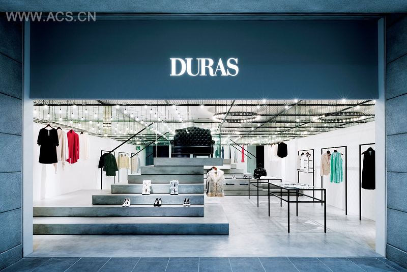 两层台阶的平台像是小山丘,可以用作展示包包、高跟鞋和模特儿的平台。顾客可以沿着底层路线,或者直接跨过几个台阶走捷径,两个长通道都可以浏览到多种商品。
