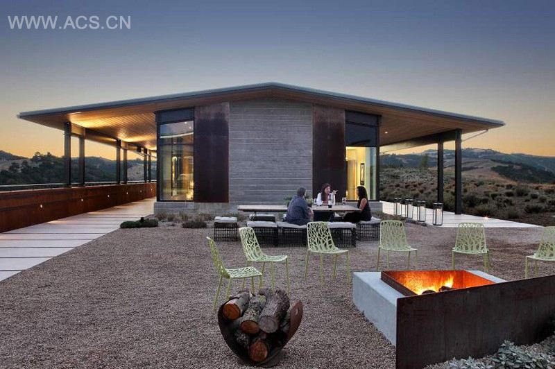 The building responds directly to the natural materials of the site, the hillside topography and climatic influences of sun and wind. The resulting design is contextually modern and expressive of the various uses contained within the winery.