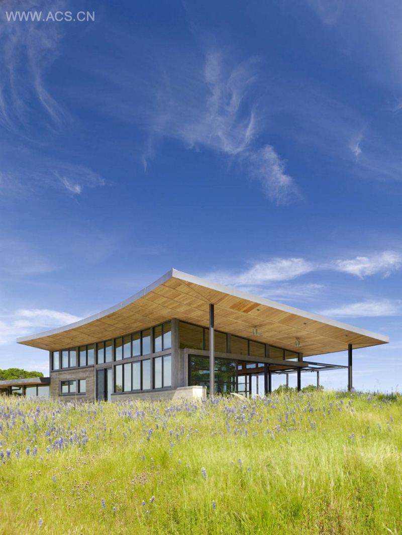 The design for the Caterpillar House, sited on the softly rolling hills of the Santa Lucia Preserve, sought to accentuate a connection to the land.
