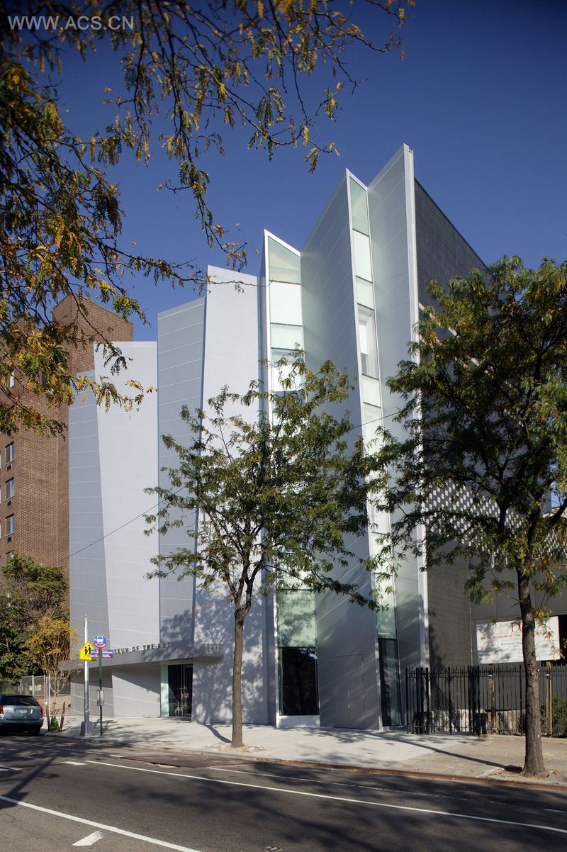 这个设计来自于人行道就像是由多孔玻璃和金属面板组成的不规则折叠屏。加入了对角线成分的正面设计突出了裂痕的深度。金属的垂直地带和玻璃的角度和弯曲就像一个建筑的玻璃面,突显了面向街道的那面墙并使它具有可透性。通过半透明玻璃薄片,人们能看到社区画廊的底层。这个像窗帘一样的几何体戏剧性的把垂直尺度变成一个不可思议的巨大平面。