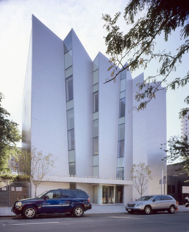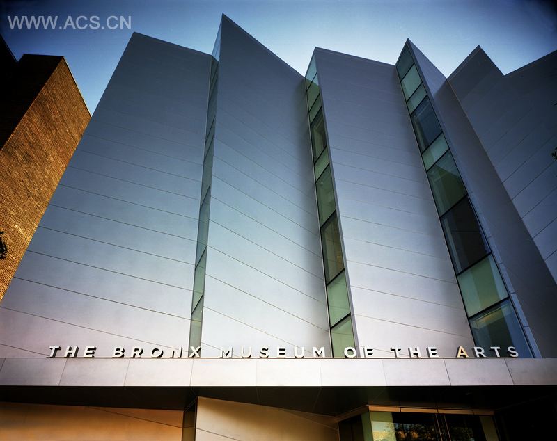 侧面的临时砖墙以黑白块错综结构为特征,形成的几何图形画布让人想起布朗克斯建筑无处不见的砖墙。与前面墙形成了鲜明的对比。在里面,上面的画廊朝向露天平台,这平台建于令人惊奇的高于地面30多米的地方。