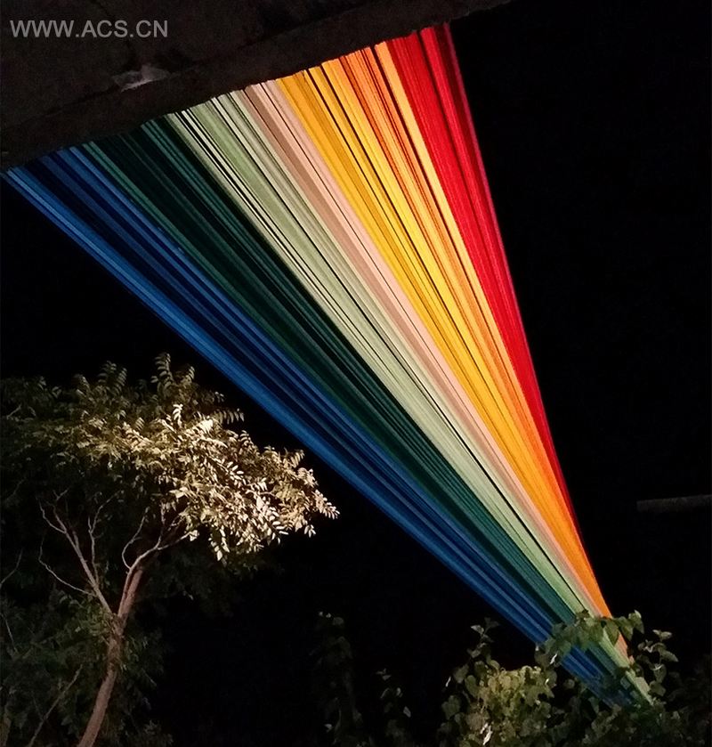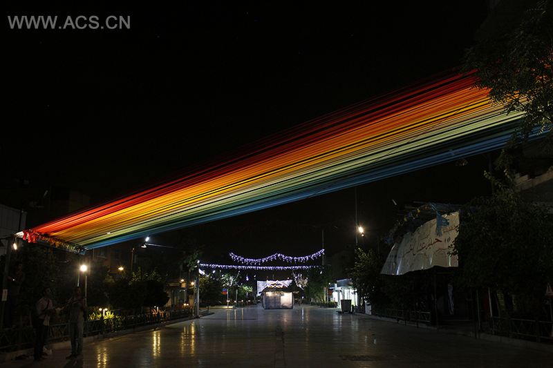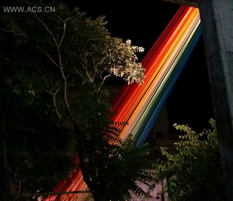“低音彩虹”是EOT设计工作室设计和制作的一件互动装置,该装置是应德黑兰市政府的要求设计的,位于德黑兰的hefdah-e-shahrivar street大街。该装置由150股绳子构成,在有风的时候,这些绳子的晃荡还会产生细微的雨声。夜晚的时候,“低音彩虹”两端的路灯会照亮整个装置。