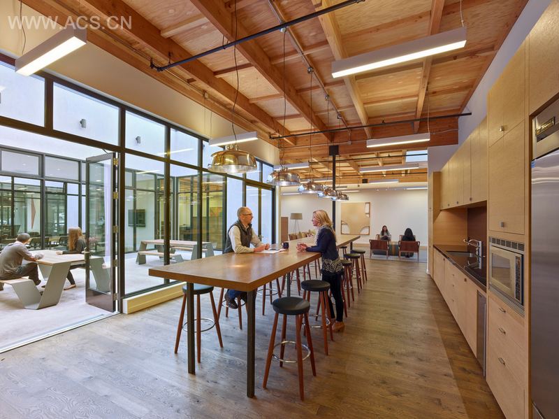 放松,现代的座位区提供更多的休闲会议和员工的设施,以及客户的舒适。一个健康的工作环境,通过可操作的窗户促进自然通风和照明,并通过辐射加热和低速风扇控制室内的气候。
