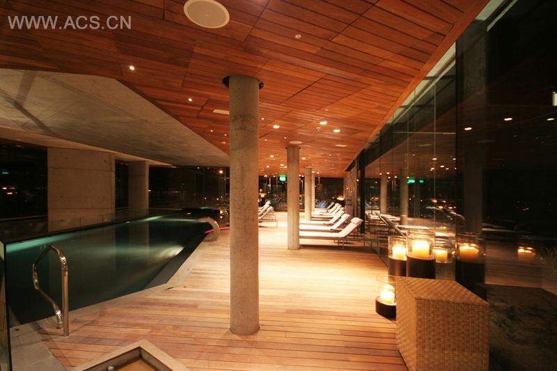 在这两层之间的不足就是在底层有“劈啪“ 的水声音,恰好来自上层的泳池的水会沿着墙壁流下来。