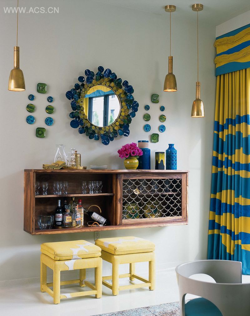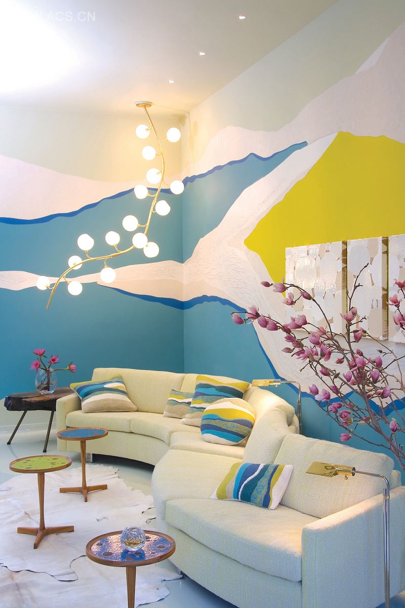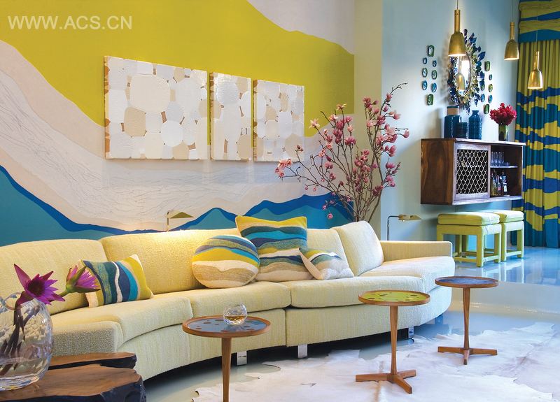 室内设计师兼馆长艾米·劳最近在举办一个独特而有趣的展览,这个展厅位于2007基普湾展览屋的500平方英尺的顶层楼中,它展示出了彷如春天般的季节。这里有一股大苏尔地区微风拂过的气息 —— 这个展厅被构思为一个能让人得到放松的休闲空间 —— “春天休息厅的仪式”,它通过一整面窗户墙展示了蓝宝石阳台。展厅采用了一种让人惊艳的色调,这种色调是由约瑟夫·亚伯斯的作品《配方》中演变而来的,这个房间捕捉了春天的清新精髓,饱和的色调 —— 从醒目的柠檬色到温和深邃的深蓝色和青绿色。纺织品也延续了房间的整体色调,枕头通过用羊毛、马海毛、驼羊毛和棉线手工编织而成。这些枕头摆在了用羊毛、马海毛和亚麻线定制编织而成的仿羔皮沙发上。房子里有各种家具及饰品,其中包括了汤米·帕尔辛格设计的休闲单椅、中世纪的提基雕像、斯堪的纳维亚的棉质树皮布、爱德华·沃姆利设计的丝绸与羊毛混搭的长软椅。