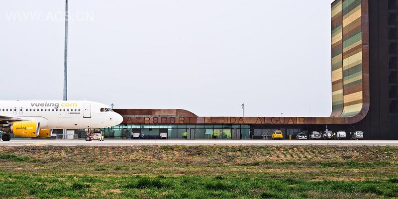 该方案包括一个航站楼,一个控制塔,两个存储间。一个巨大的外壳如毛毯般覆盖在机场屋顶上,使各种机能结构整合在一起。控制塔两端的机场屋顶成褶皱状从而牵出优美的曲线,使之成为整个设计中的亮点。由拼凑物(植物、木材、漆穿孔钢板)形成的混合肌理和色调与周边的农业景观相呼应,使机场与周边境地相融合。