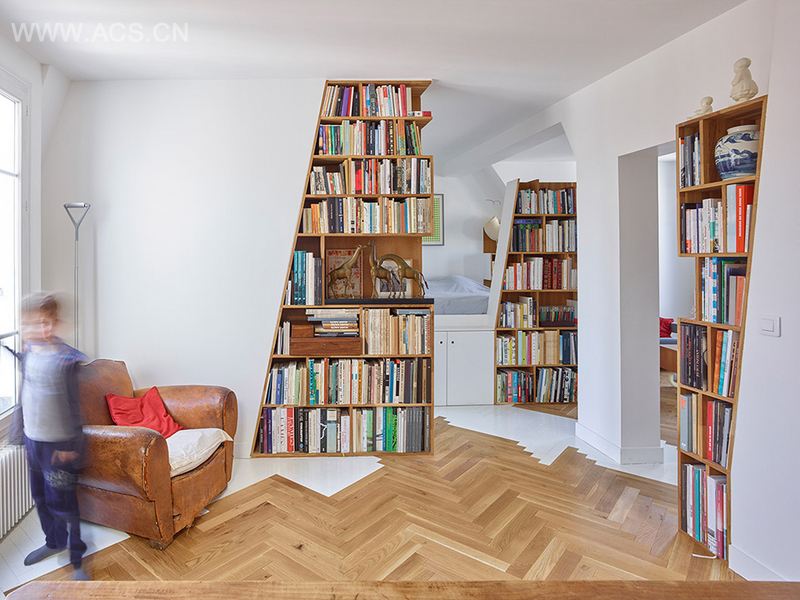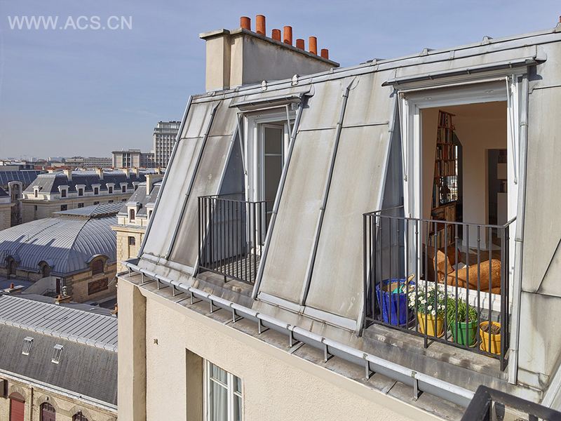 h2o architectes的建筑师把法国巴黎一套在过去由仆人居住的大阁楼改成一对夫妇和及其两个孩子的温馨家。房间三面采光,视野良好。