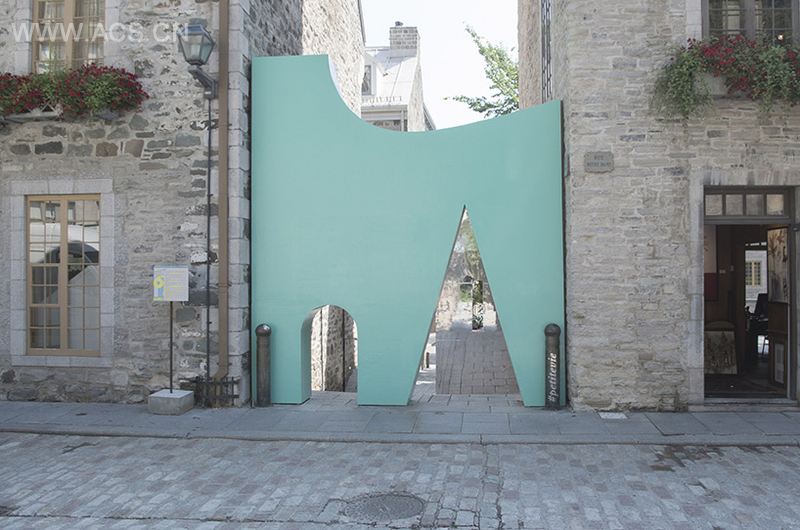 在魁北克城2015年EXMURO策划les passages insolites艺术节上,这个三人组合设计并建造了‘petite vie’。该设计靠的两面内部镜面墙来实现,旨在质疑建筑在不断变化的城市环境中扮演的角色。它促使游客们批判性地来看待他们的周遭,并探求如何分辨现实与虚幻。看到这个形状平平而色调大胆鲜艳的形式,人们还会像从前一样看待建筑吗?还会只看表面而从不需要或想要更深入地去探索?