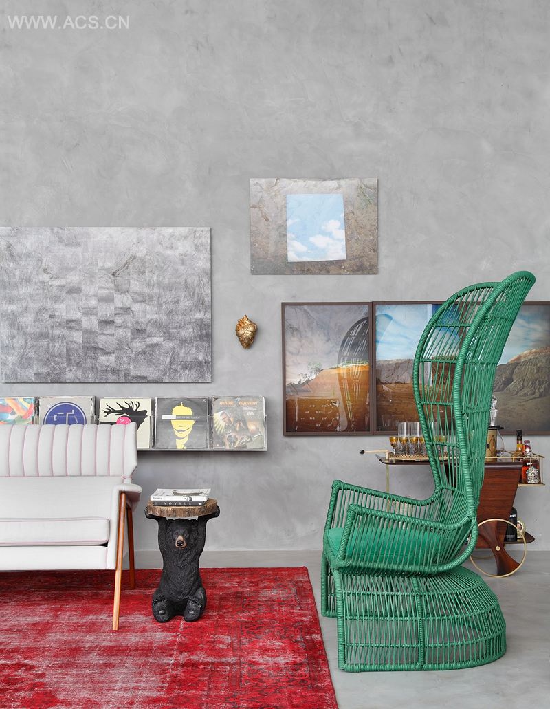 家具体现Torres 的设计风格。洛可可桌子由DJ 设计。50 年代的折叠屏出自Lúcio Costa 之手。画框来自Zipper 的收藏品。这些画框的创作者都是巴西冉冉升起的艺术新星。
