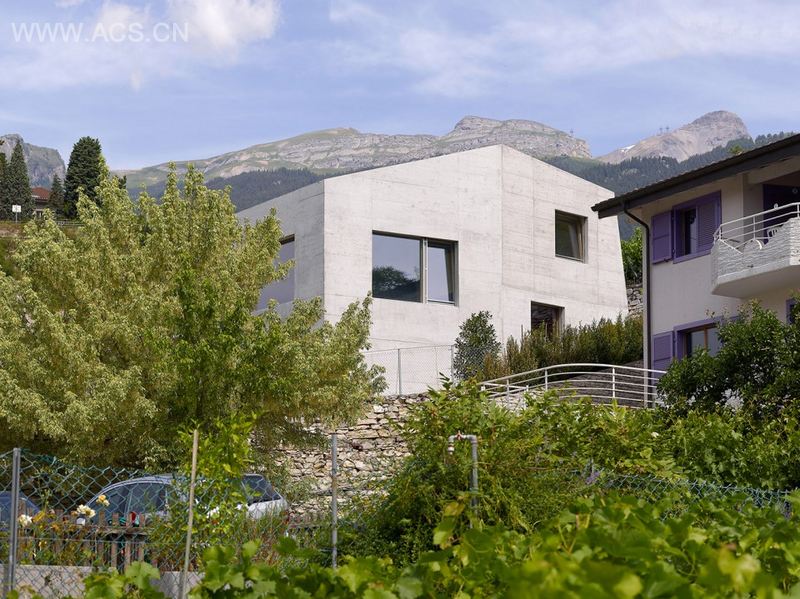 这座房屋位于谢尔的一座葡萄园的山坡上。作为对特殊地貌的回应,建筑师试图将房屋伪装成一块藤蔓中的岩石,最低限度地破坏葡萄园的景观。房屋的立面朝向最重要的几处景观:Rhône山谷、Annivers山谷和Pfyn森林。