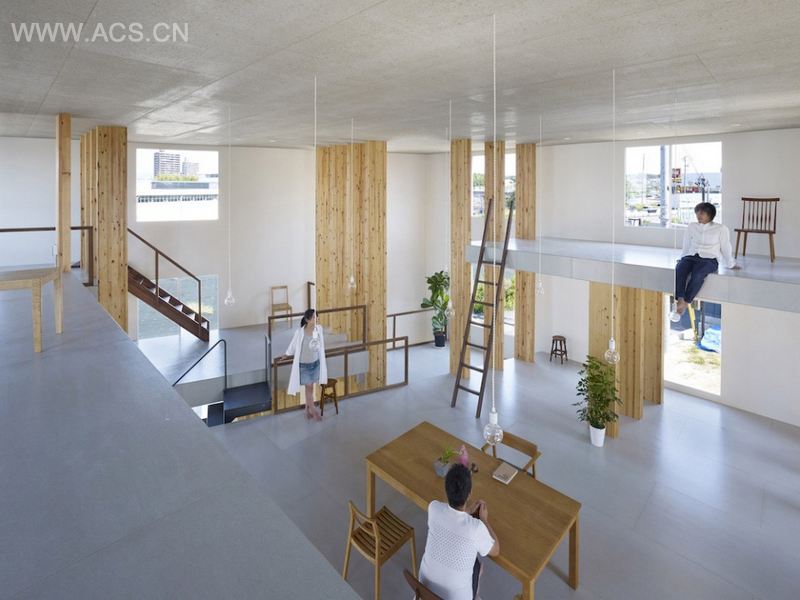 日本爱知县Mamiya Shinichi设计工作室在名古屋郊区一条公路旁建立起了自己的新办公室。他们利用木结构打造出一个鼓励团队成员积极沟通的空间。
