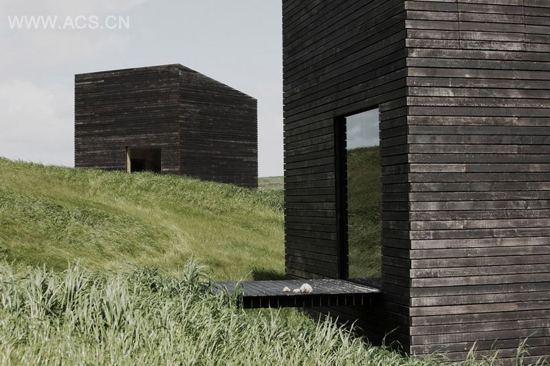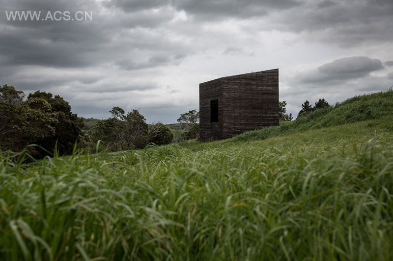 Eyrie度假屋位于Kaiwaka附近,项目整体包括两栋小屋,每栋面积不大,都用木材制成,外表皮的木材均被碳化。场地位于一个河口处,这个1500米的用地建筑面积限定在两个29㎡中。