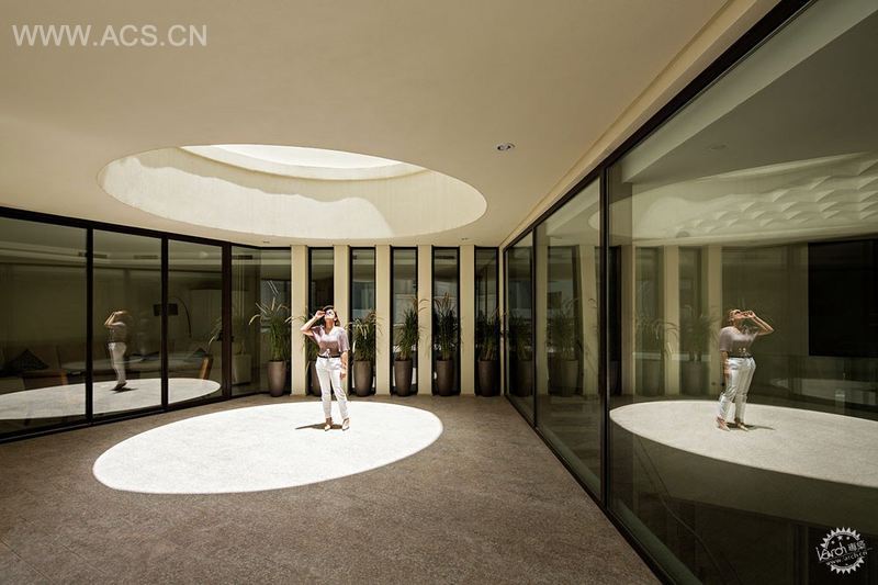 巨大的圆柱形切口通过二、三层切割为许多部分,当在较高楼层上描绘使用功能时,可以使光线渗入平台和两层高的空间。它也在使用者日常常规中添加了动感的局部体验。休息区、生活区、主餐厅和日常入口与这种局部体验有着直接联系,使它成为设计的关键。